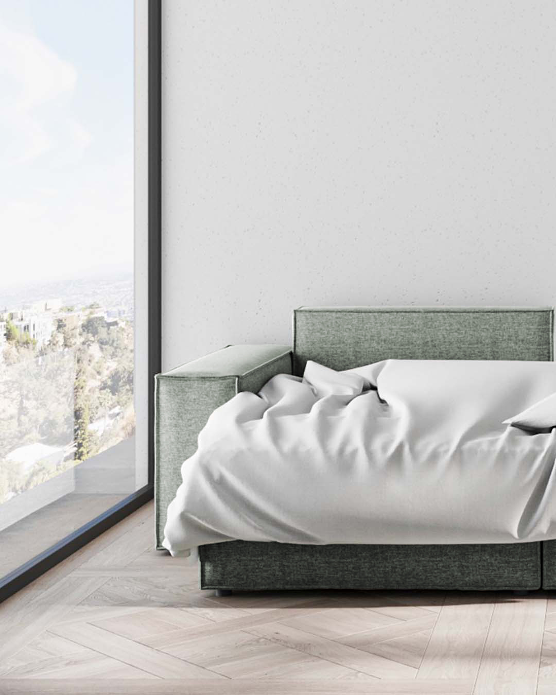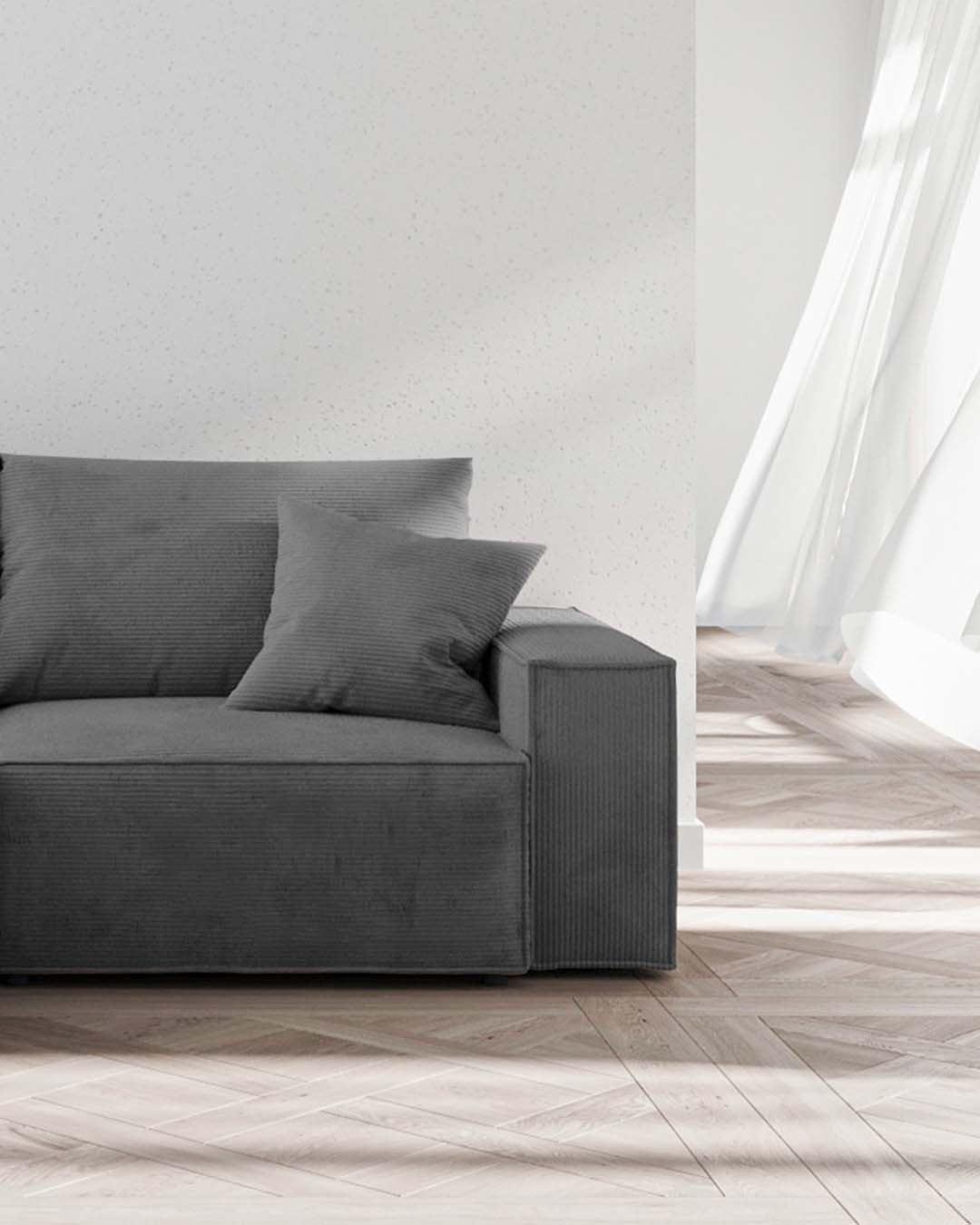 Melow is a sofa that boldly and freshly reinterprets the concept of modernity. The furniture consists of cubic, geometric shapes that give the impression of softness and comfort. The well-chosen elements and the massive proportions of the seat and backrest are harmoniously balanced, creating not only an ideal seating area, but also an occasional bed – for both small and large interiors. This sofa will be perfect for industrial and modern living spaces.