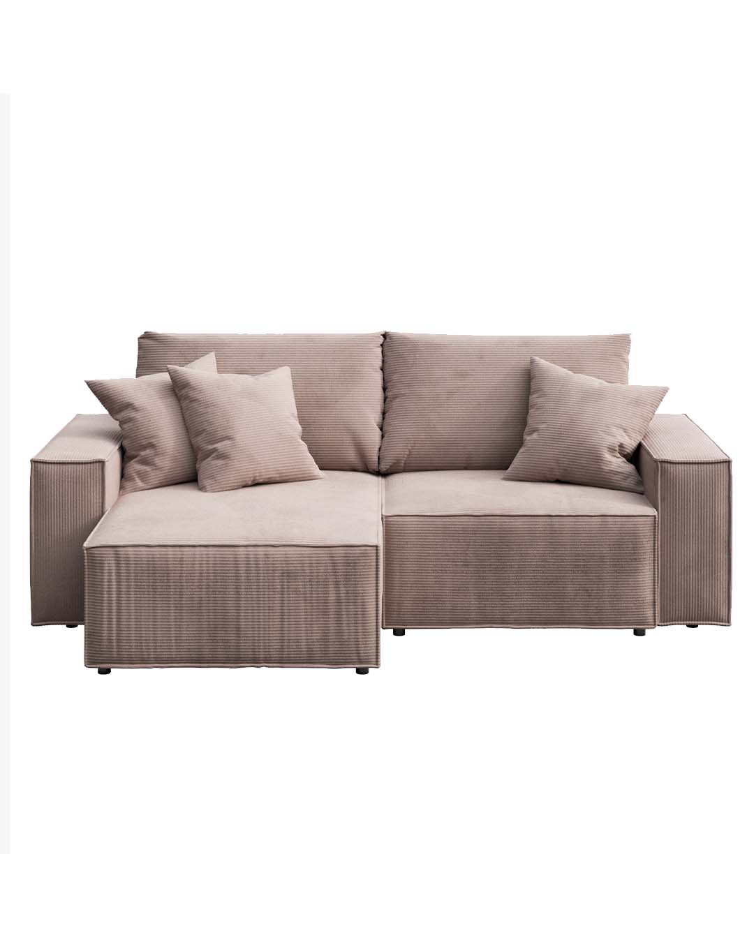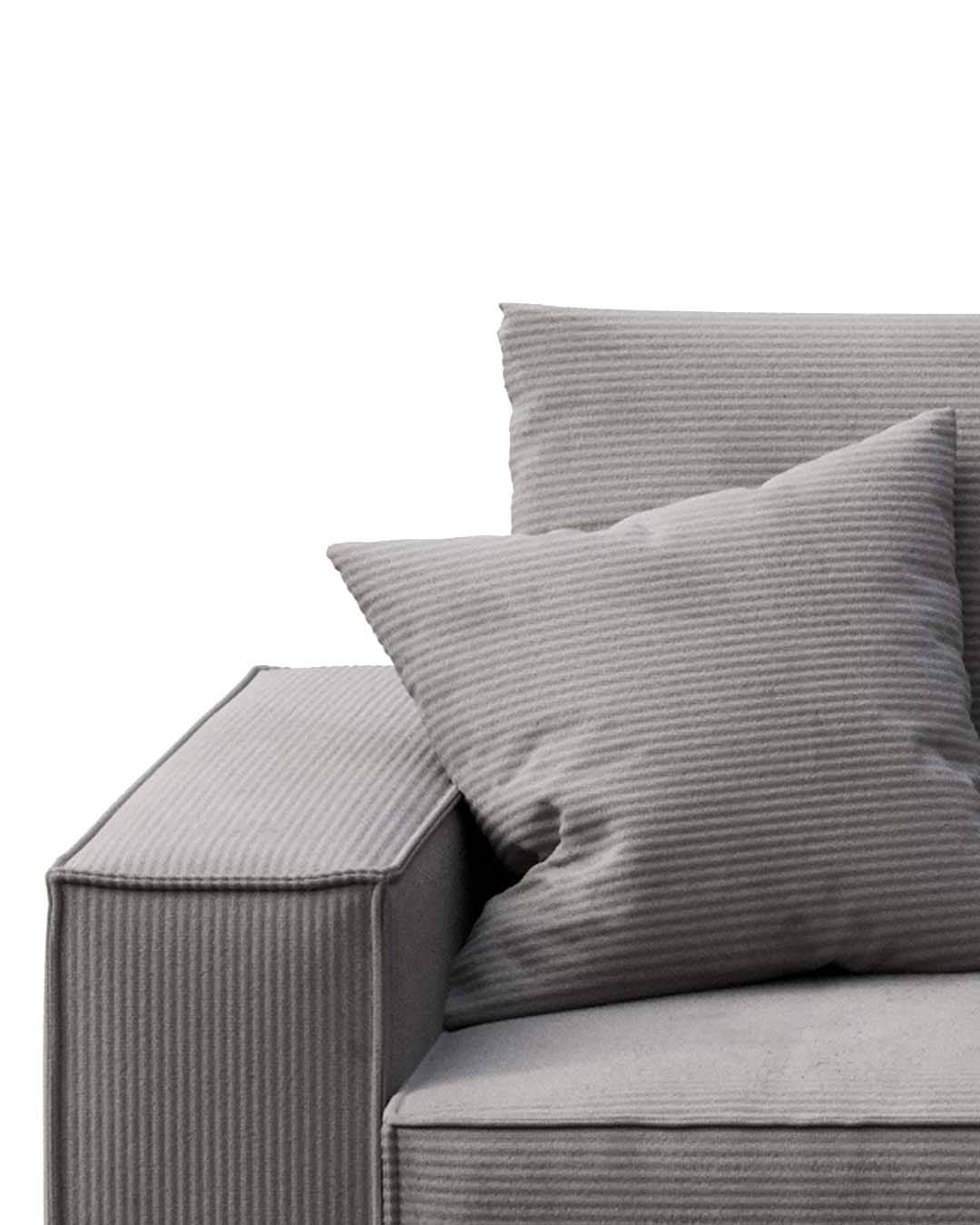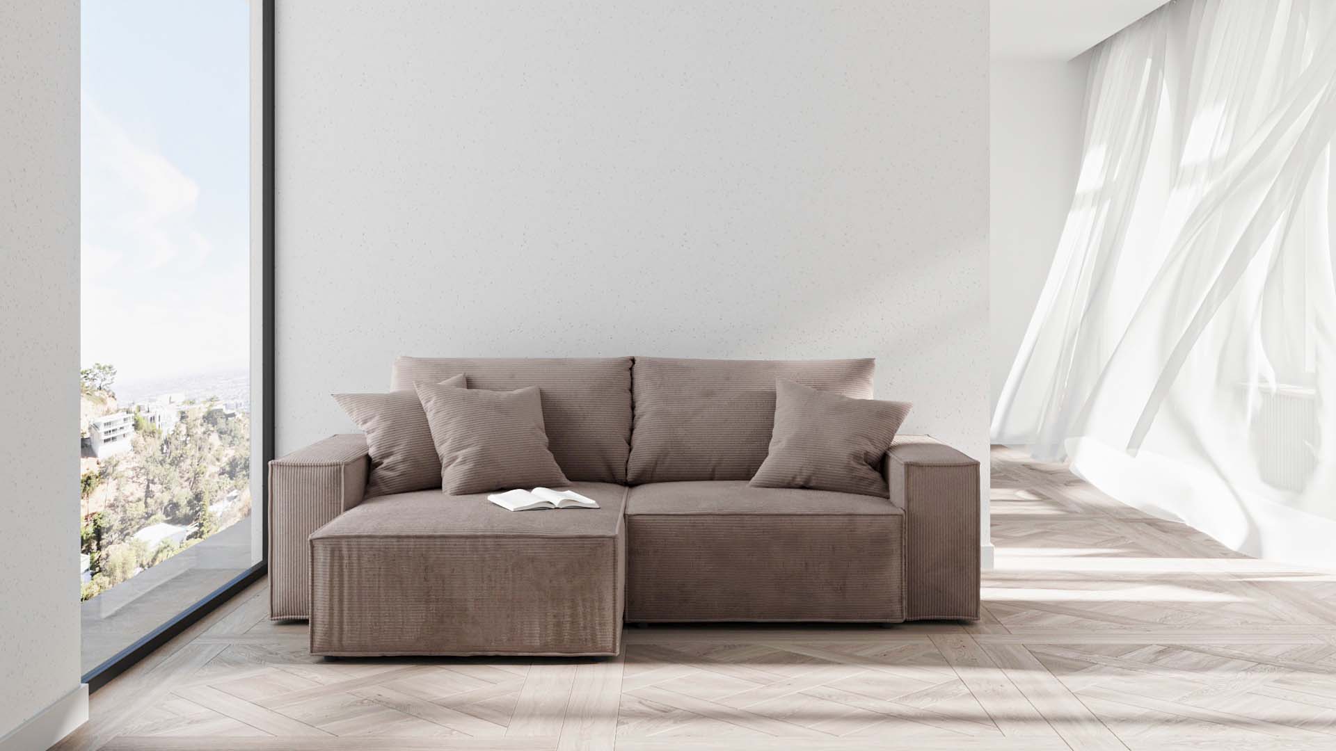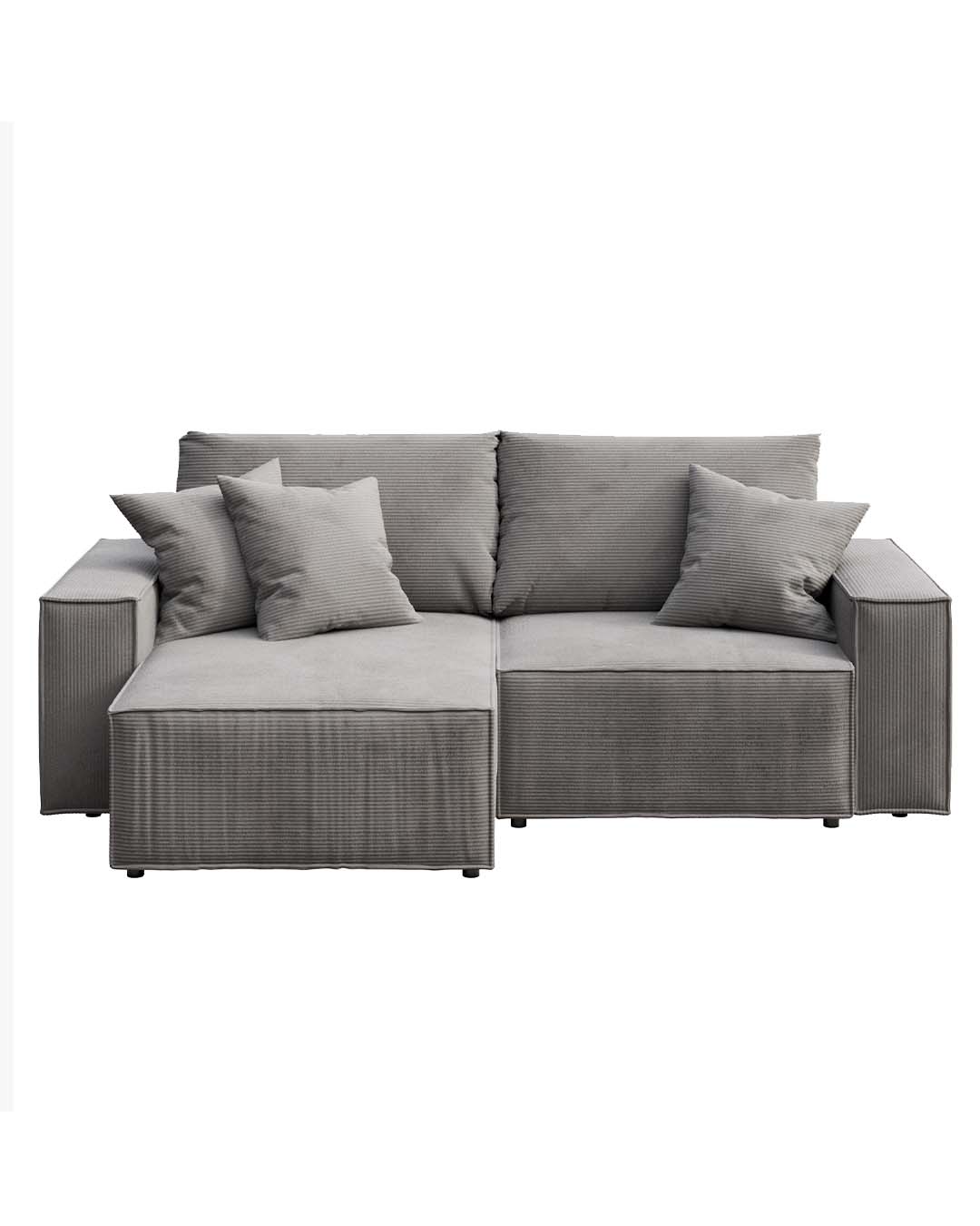 The Melow corner sofa is a universal sofa – when assembling, you can choose whether you want the ottoman to be oriented on the right or left side of the seat. Assembly instructions for both versions are included with the furniture.