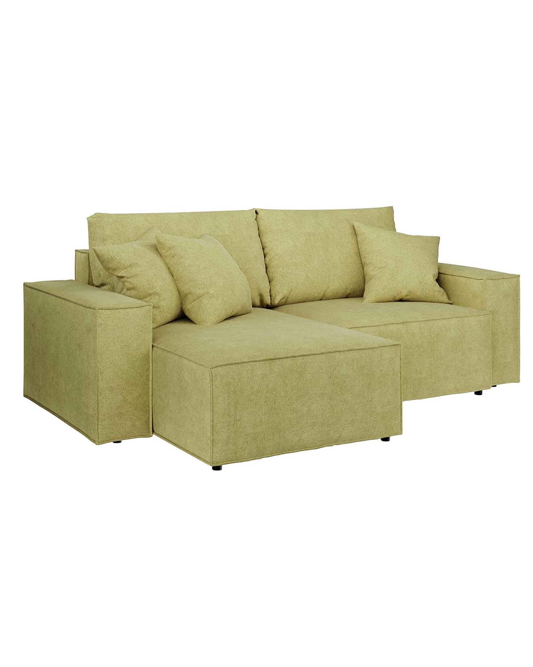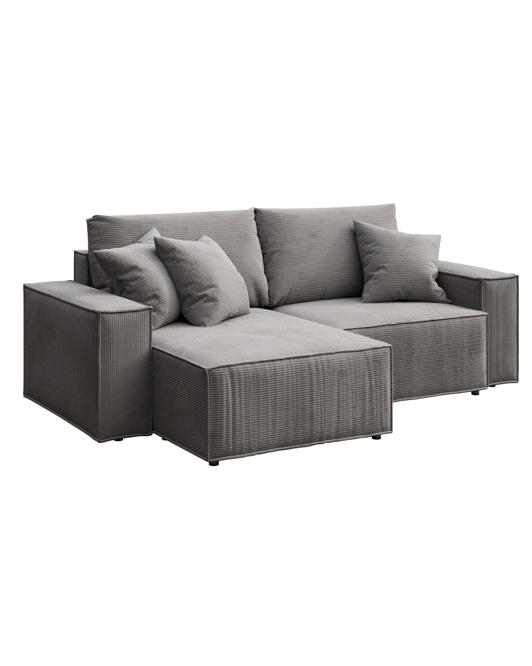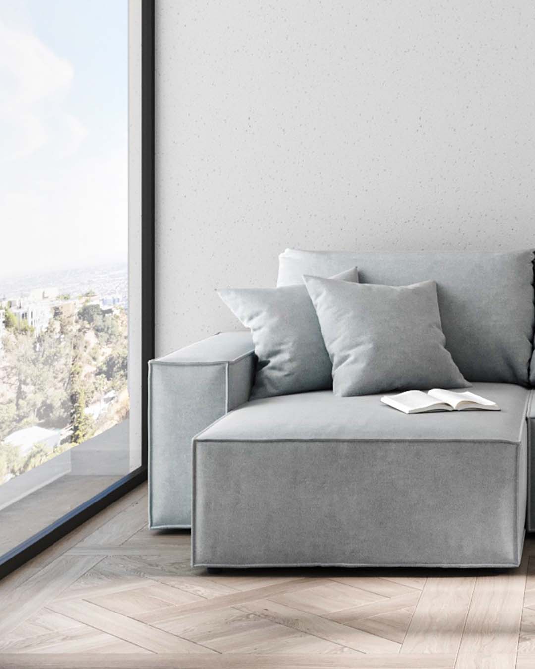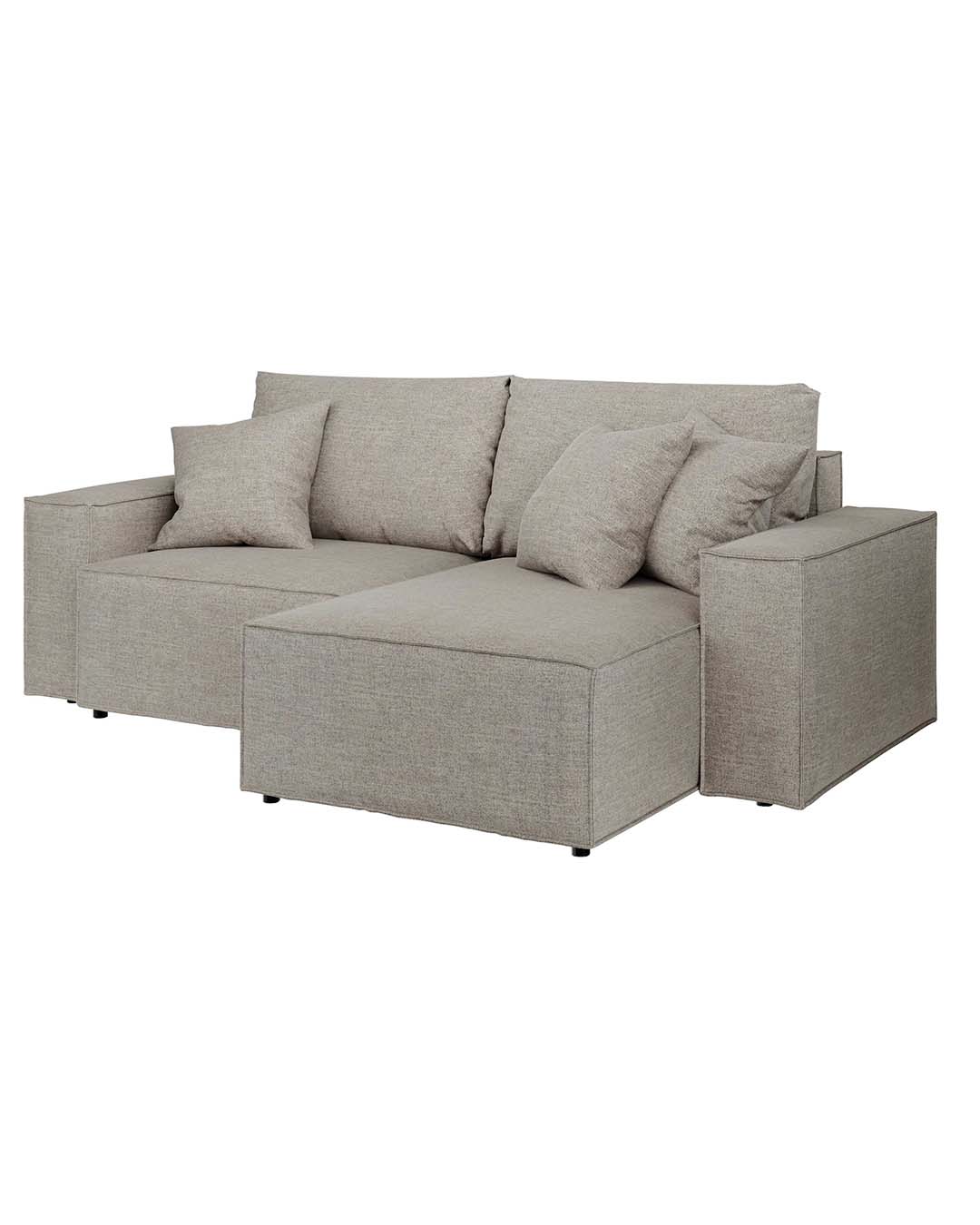 The Melow corner sofa is a universal sofa – when assembling, you can choose whether you want the ottoman to be oriented on the right or left side of the seat. Assembly instructions for both versions are included with the furniture.