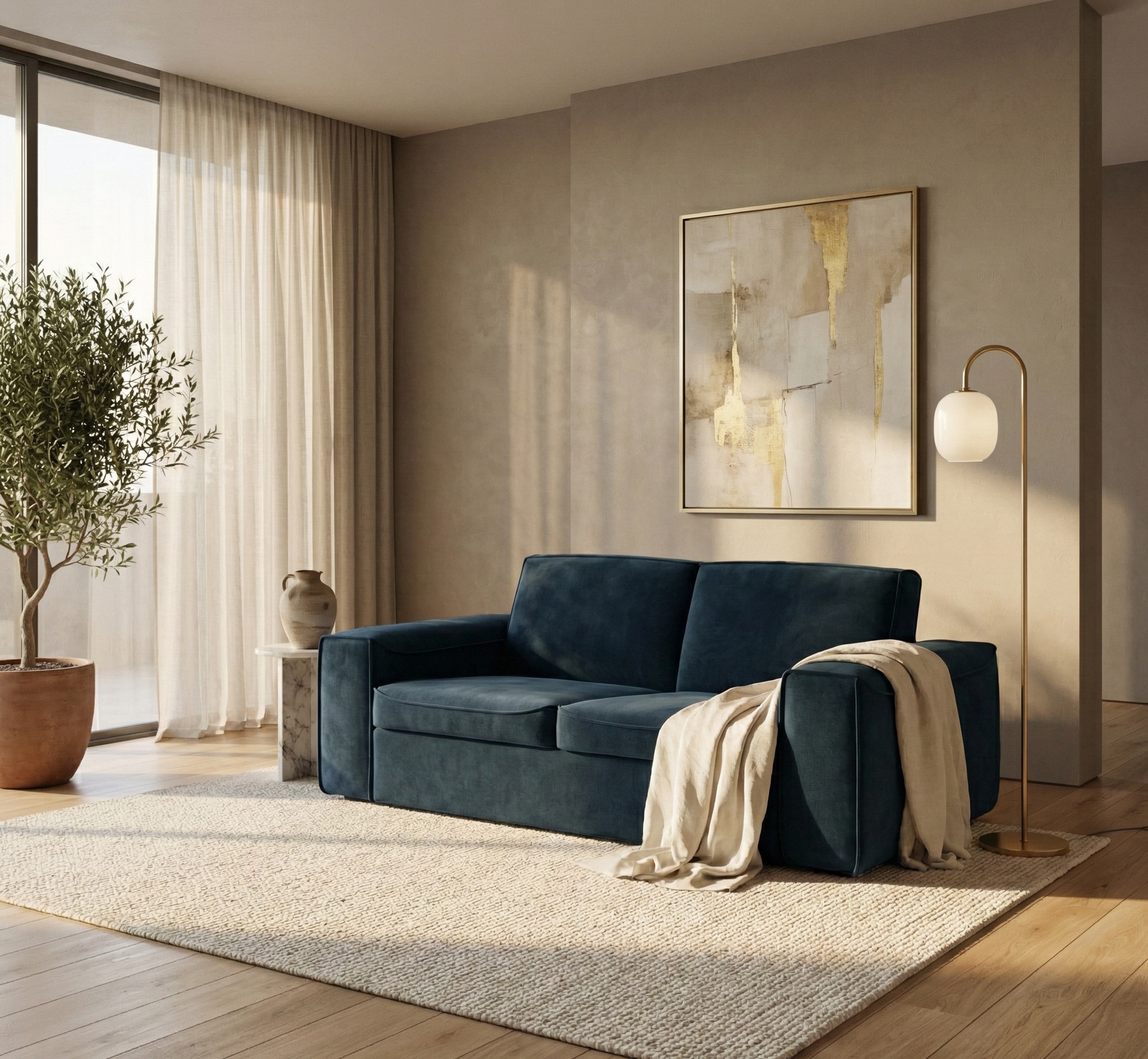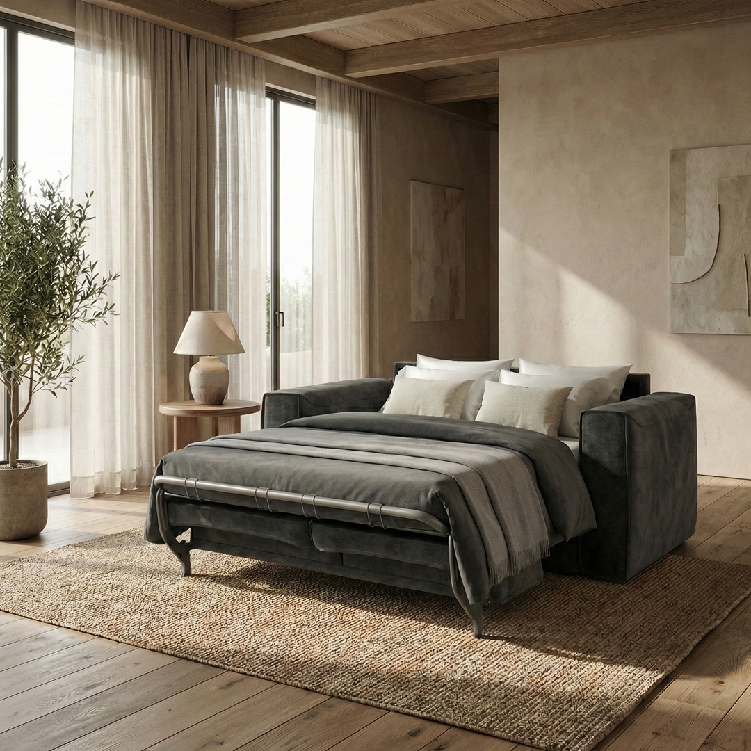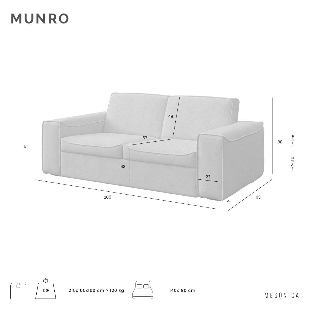 Munro is the first convertible sofa in Mesonica collection. We wanted to create a perfect combination of charm and utility by adding a comfortable sleeping mattress to an elegant sofa. This convenience allows you to change your sofa easily into a living bed – practical solution when you have guests staying overnight or for small apartments. Mesonica products are made only from high-end elements and quality fabrics, no different is Munro which holds a mechanism giving you a light touch opening and closing every day. Munro sofa is finished with wooden legs and a thick stitching over the edges enhancing its modernistic look.