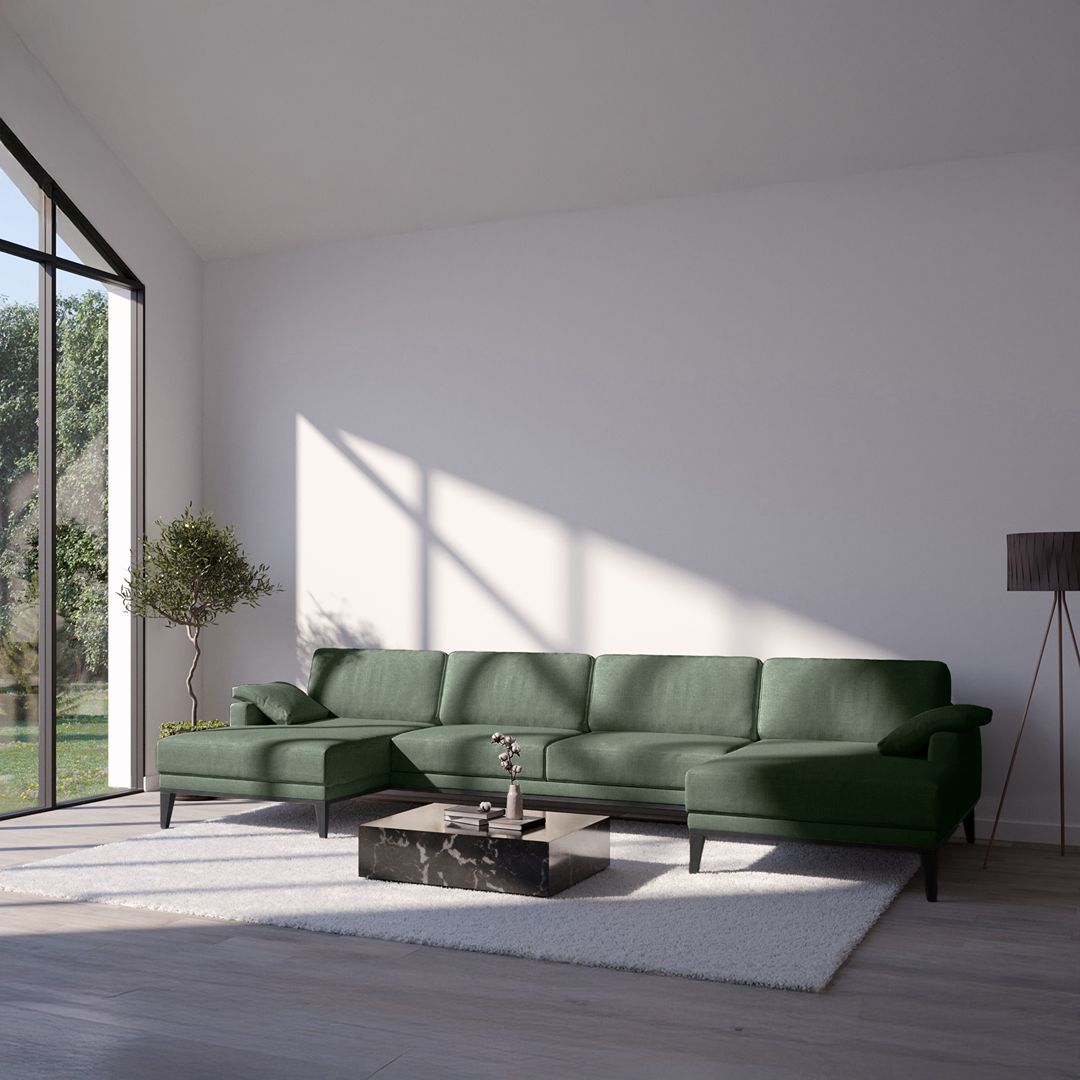 The MUSSO double chaise-longue sofa tufted is made of high quality furniture fabric which provides its aesthetic look as well as above-average durability.