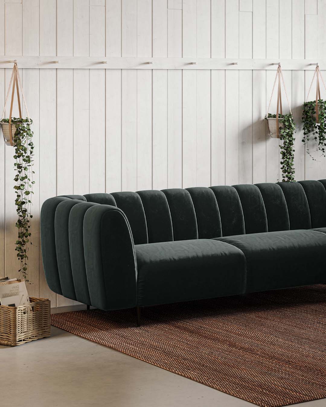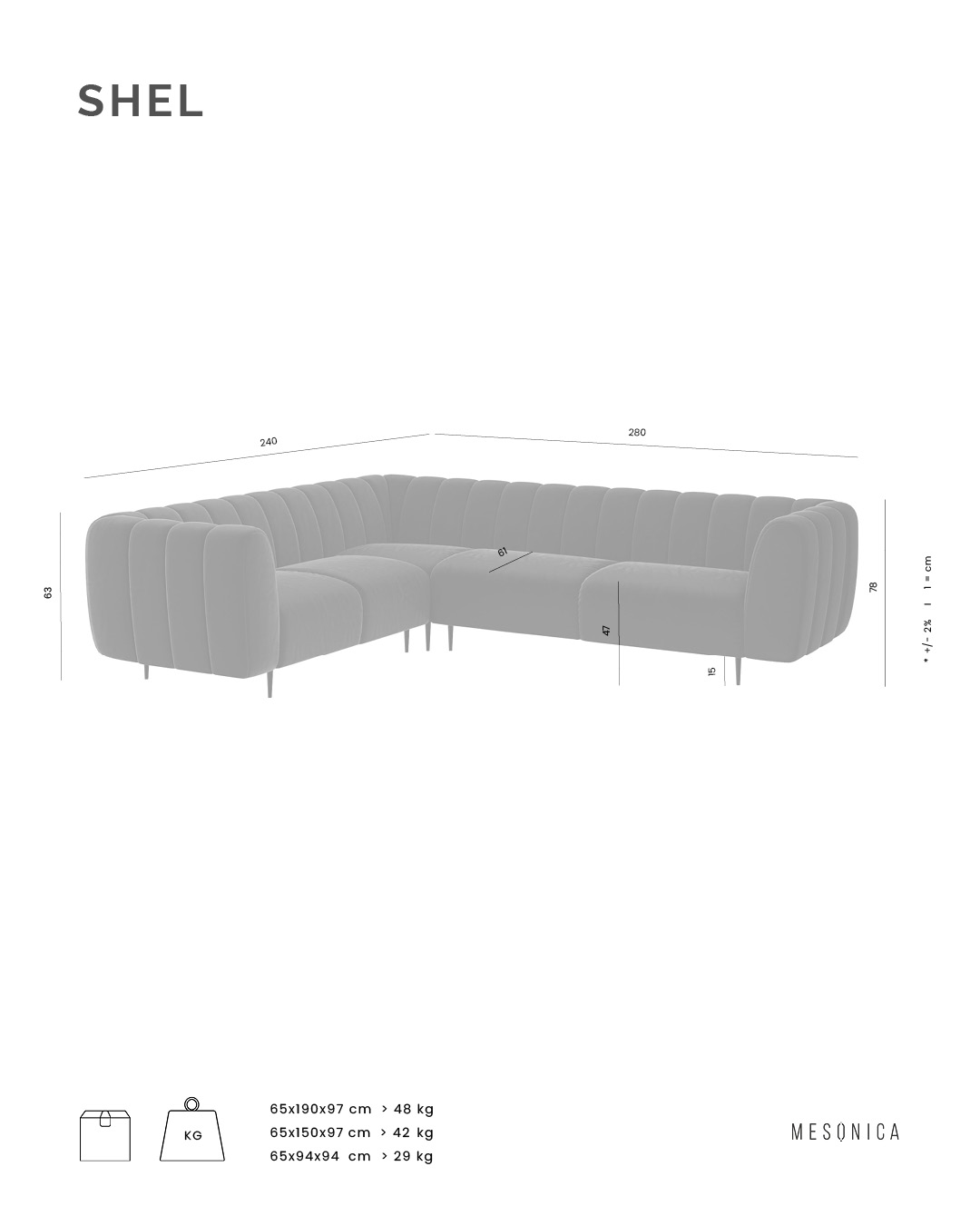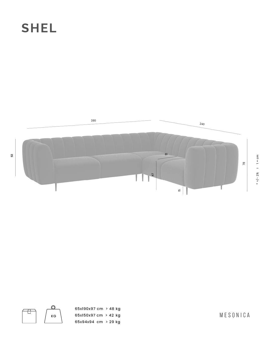 Sofa Shel is one of the products from the collection of the same title. Incredibly soft filling of the furniture allowed its unusual shape. The form of the sofa consists of harmoniously repeating, rounded at the ends, divisions in appearance resembling the shape of a shell. An additional asset of the sofa are its simple metal legs, which, in contrast to the massive part of the seat, provide a compositional balance.