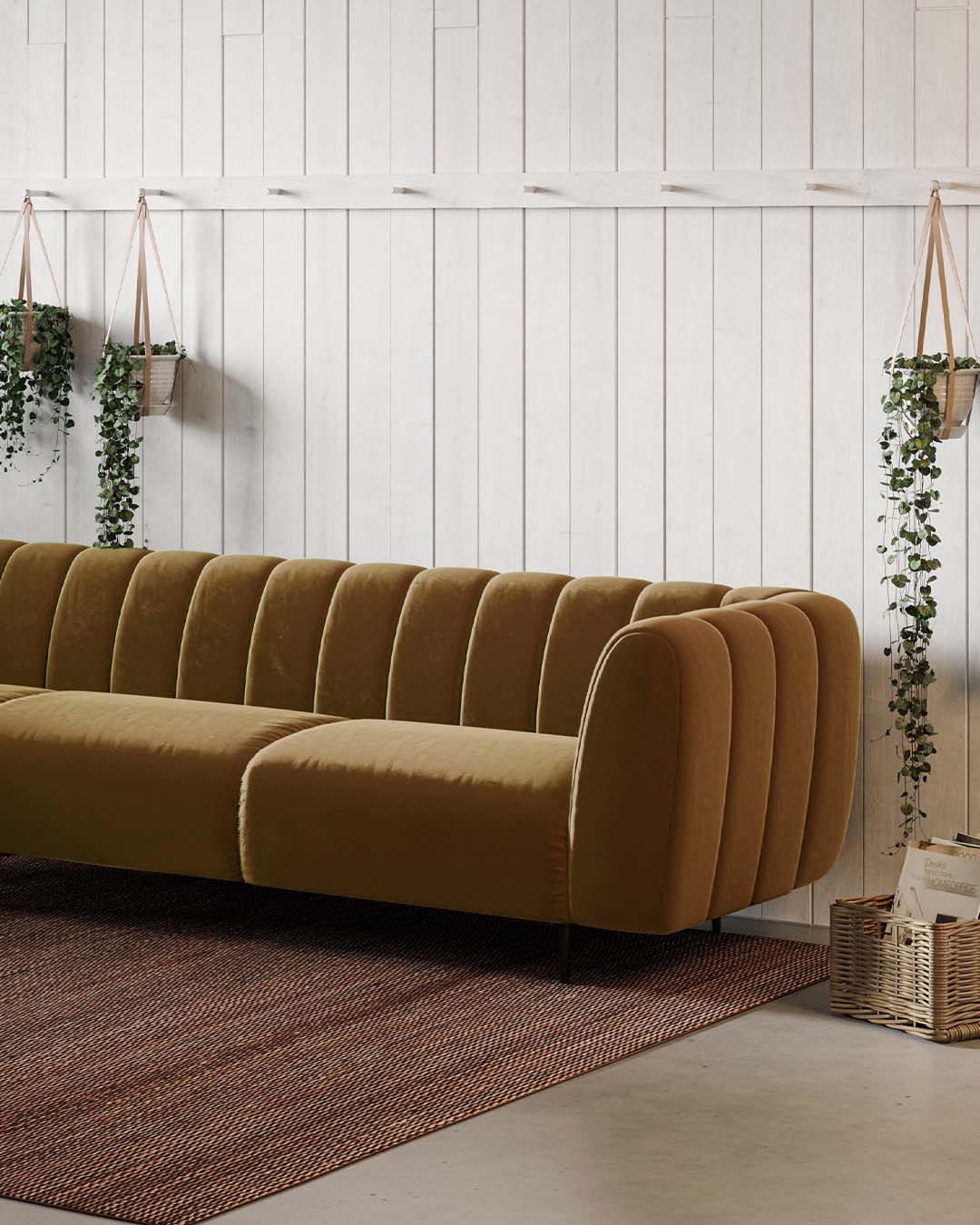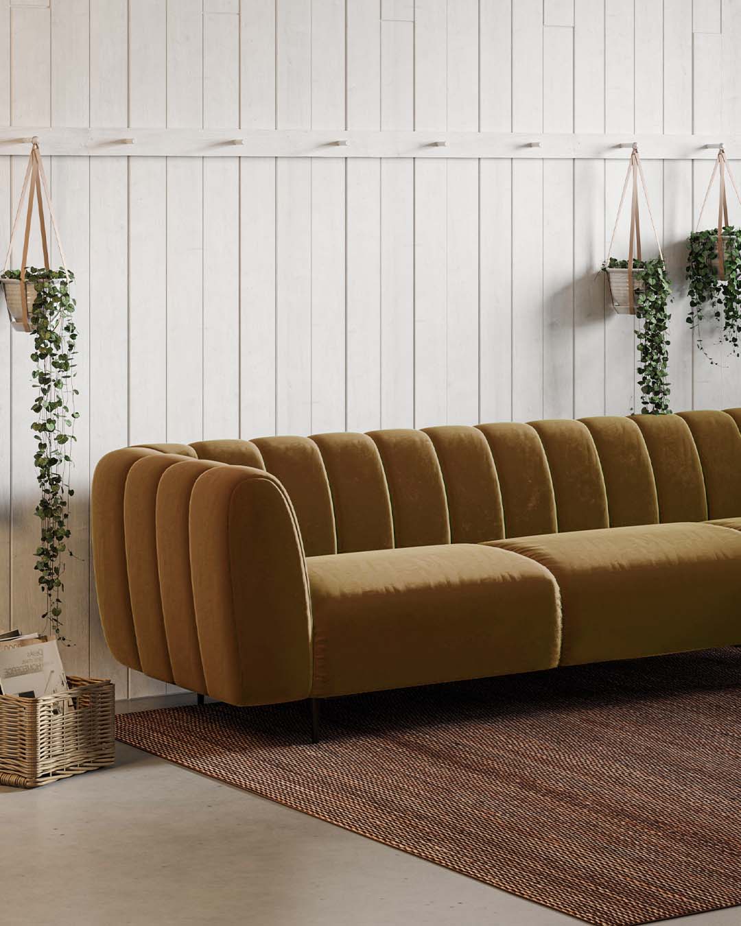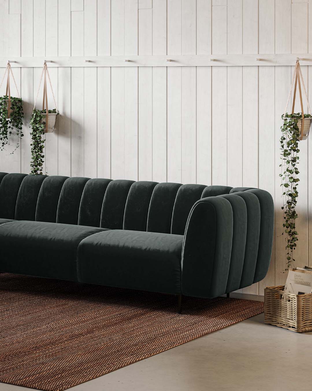 Sofa Shel is one of the products from the collection of the same title. Incredibly soft filling of the furniture allowed its unusual shape. The form of the sofa consists of harmoniously repeating, rounded at the ends, divisions in appearance resembling the shape of a shell. An additional asset of the sofa are its simple metal legs, which, in contrast to the massive part of the seat, provide a compositional balance.
