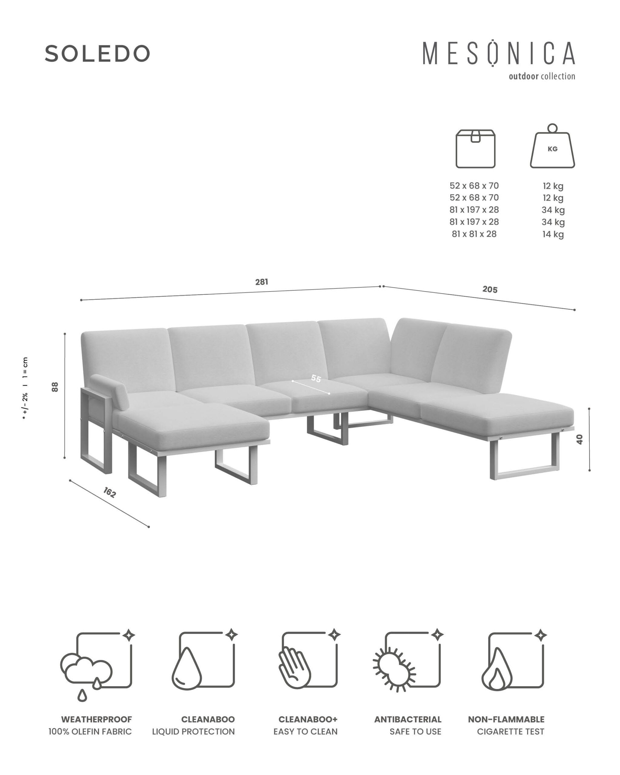 With the Soledo corner sofa, you can bask in the sunshine, lounge with friends and family, or simply unwind in complete comfort. Upgrade your outdoor experience with Soledo corner sofa.