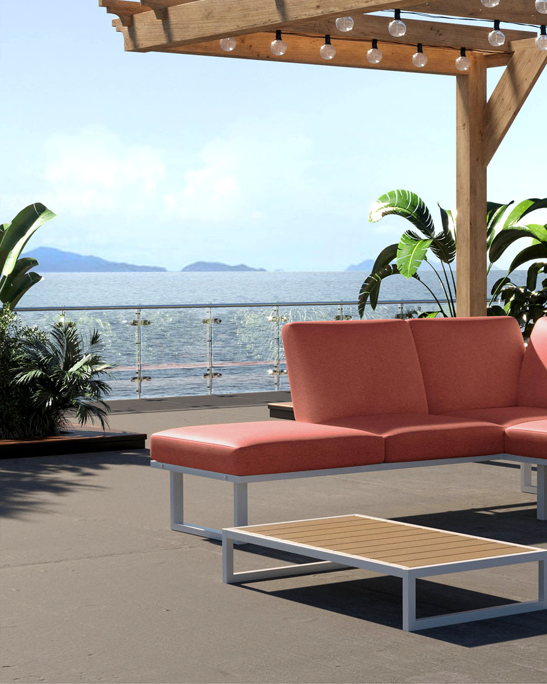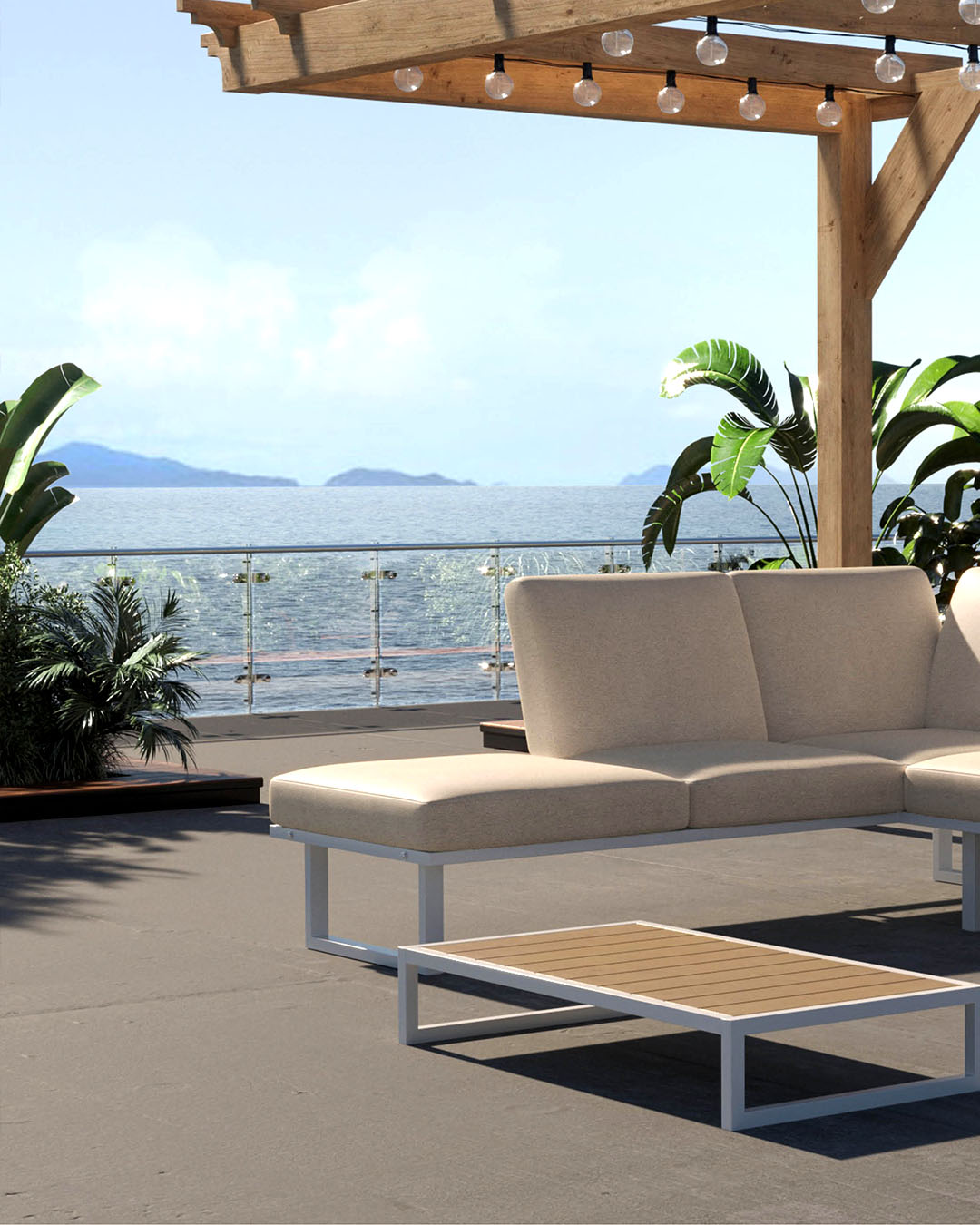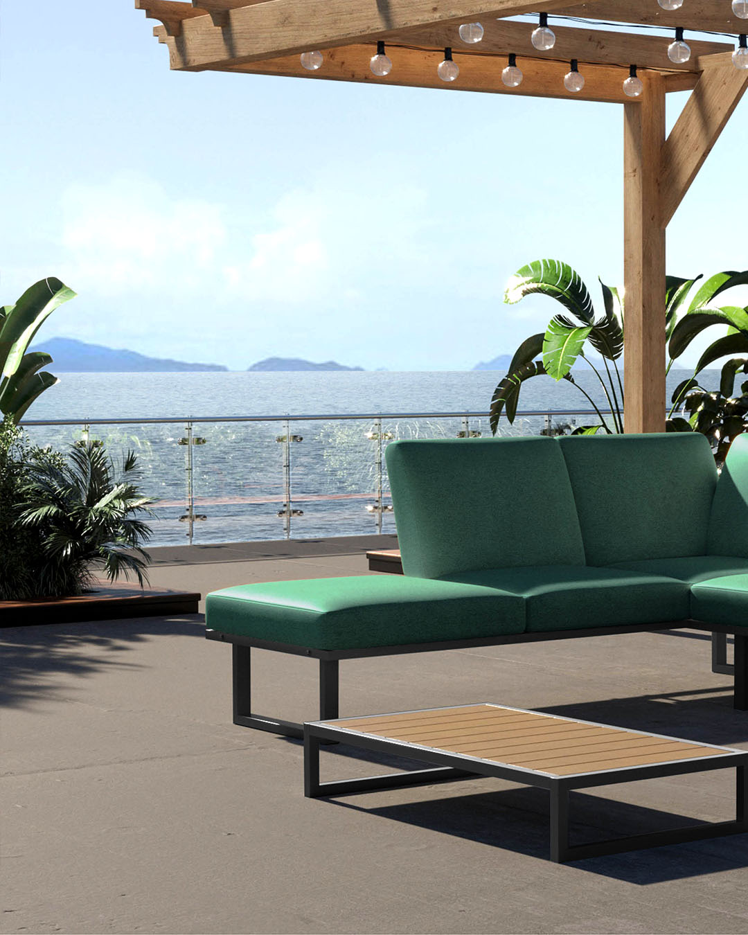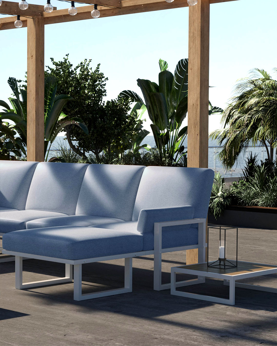 Throughout the Soledo collection, we use only dedicated outdoor olefin fabric. This fabric is characterized by water resistance and high resistance to color fading when exposed to sunlight. Its additional advantages include flame retardancy and antibacterial properties.